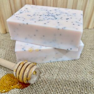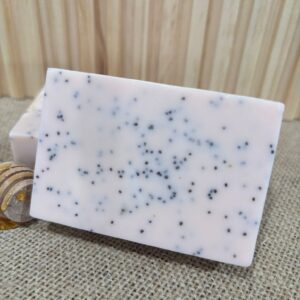 Pamper your Skin with Luxurious Soap! Featuring a soothing goat milk base, gentle poppy seeds, and nourishing honey. Infused with sweet almond oil, vanilla scent, and vitamin E, it gently exfoliated, deeply hydrates, and helps calm skin conditions like dryness, irritation, and sensitivity. It leaves your skin feeling soft, smooth, and beautifully nourished.