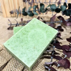 Goat milk base, Eucalyptus leaves and scented oil, jojoba oil, Vitamin E.