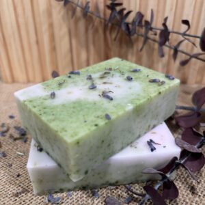 Immerse your skin in the calming blend of our Lavender and Eucalyptus Soap! Infused with soothing goat milk, revitalizing spirulina, and nourishing marula oil, plus vitamin E, it hydrates, soothes irritation and rejuvenates your complexion. Perfect for a refreshing and balanced skincare experience.